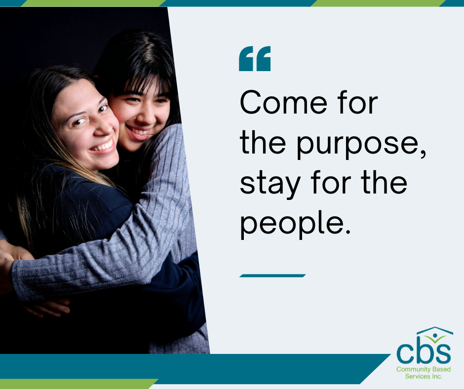 “Come for the purpose, stay for the people,” is more than a slogan at CBS—it’s the reality that employees experience every day. The agency’s 40+ year history of serving people with autism and developmental disabilities provides meaningful work that makes a tangible difference in people’s lives.